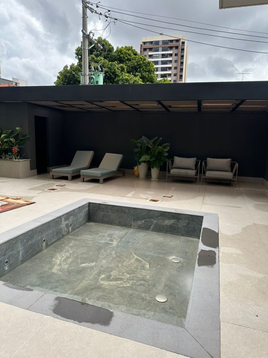 O condomínio é completo, com portaria, piscina, sauna, hidro, academia, salão de festas, sala de jogos e brinquedoteca.