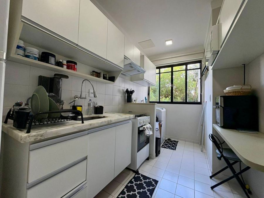 Cozinha integrada com lavanderia, com armários embutidos